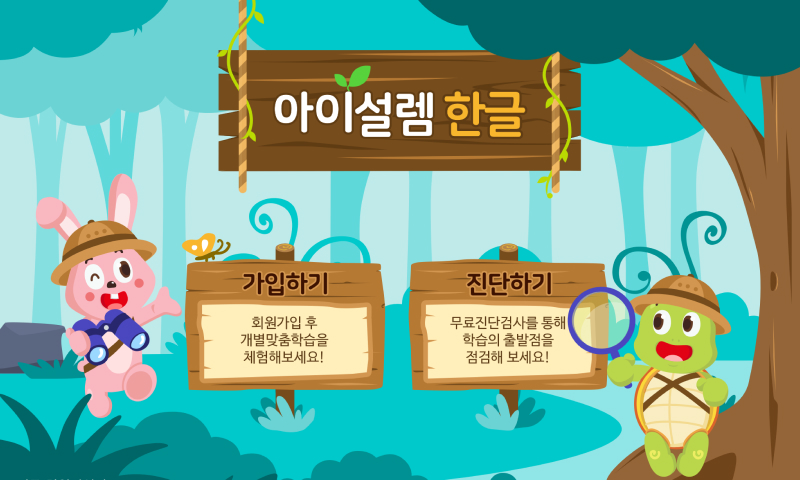 기본 모음, 기본 자음 학습 단계 수준의 읽기 텍스트를 자소별로 제공합니다.